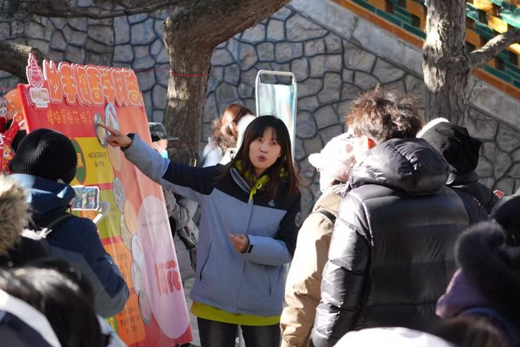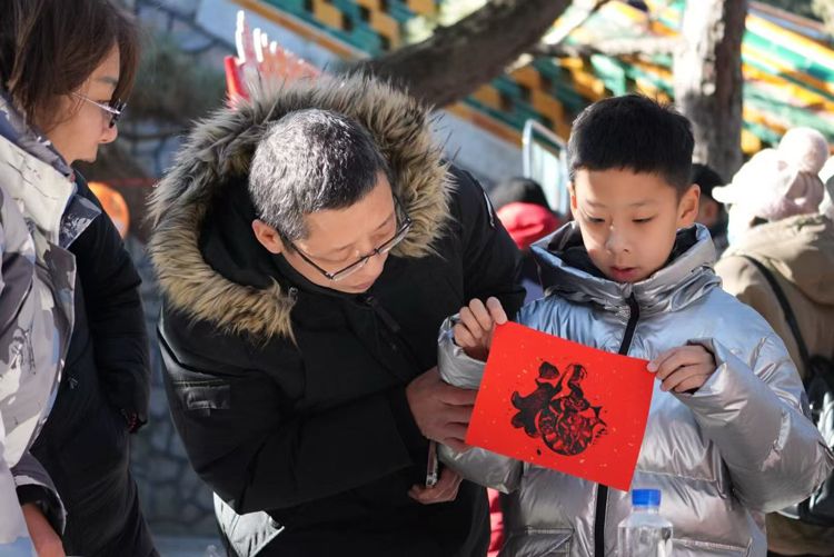 德和园的 “非遗体验” 活动,工作人员展示写春条、拓 “福” 字等技艺,游客参与其中表达新年祝愿。