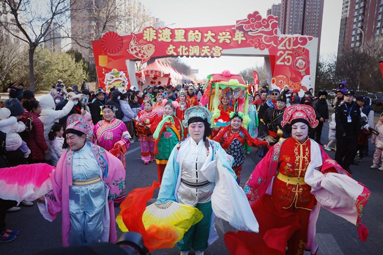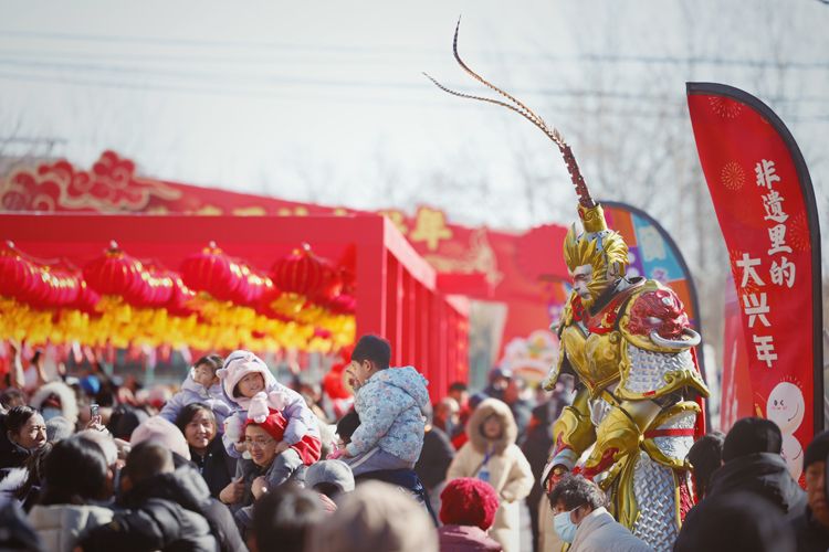活动以“非遗传承”为主线。作为天宫院地区传承的传统民间花会,“五虎圣会”率先将本次活动“闹”了起来。高跷巡游、小车会、杂技、舞狮、舞鼓、舞扇、京剧等众多非遗表演把活动推向高潮。