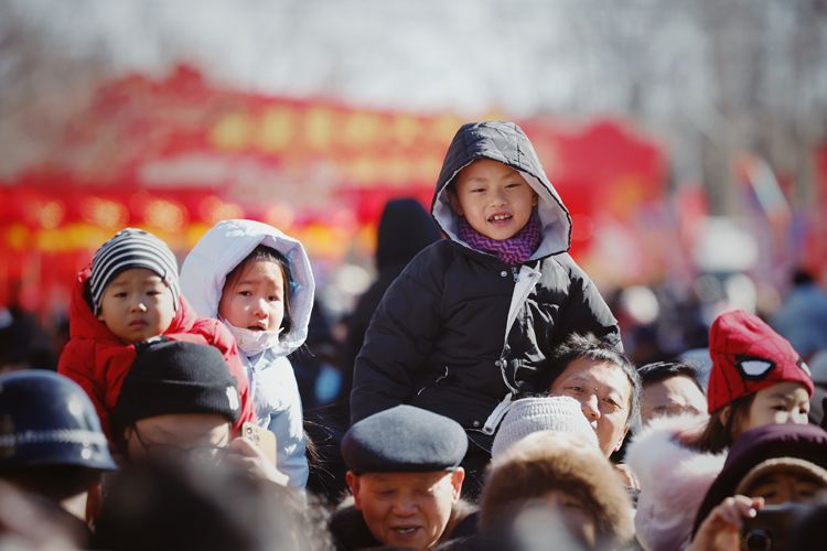 活动现场人头攒动,小朋友们坐在家长肩上观看“非遗”表演。