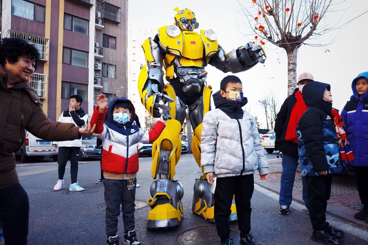 程阿姨的小外孙最喜欢“五虎圣会”中的耍大刀,这是他第一次在现实中观赏到。和巨型悟空互动时,最关心他为啥没拿金箍棒。孩子们还和机甲大黄蜂一起合影,为花会的精彩表演而鼓掌欢呼,在家门口度过一个别样的“非遗”元宵节。