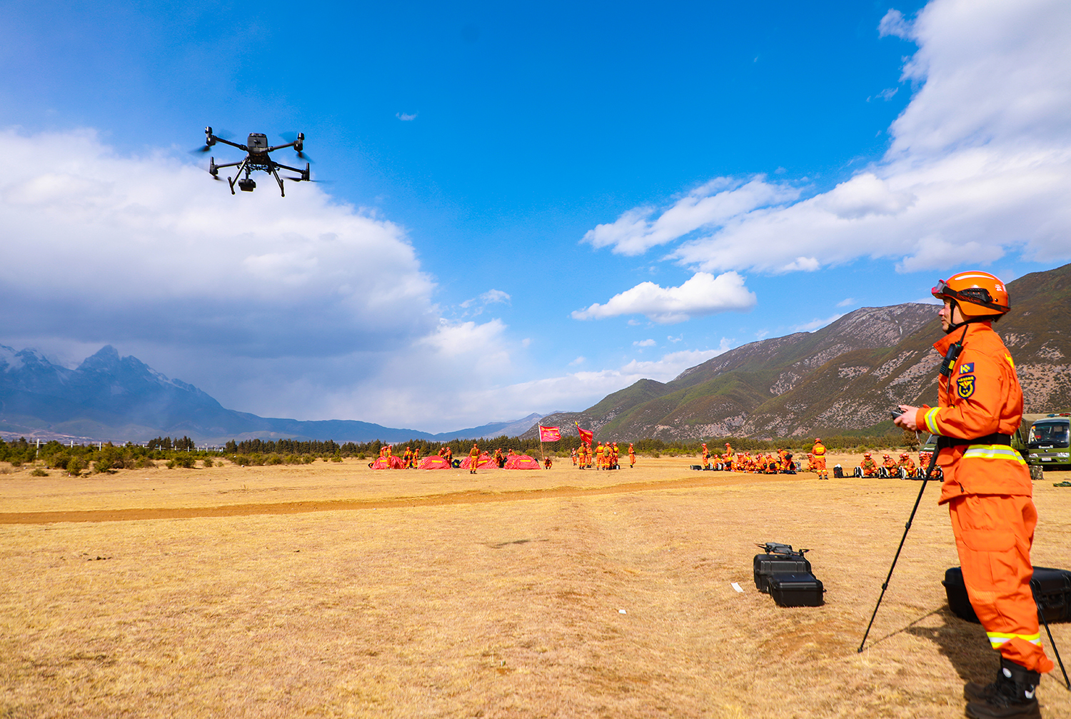 演练现场,前突小队用无人机拍摄火场画面。 图源:丽江森林消防支队