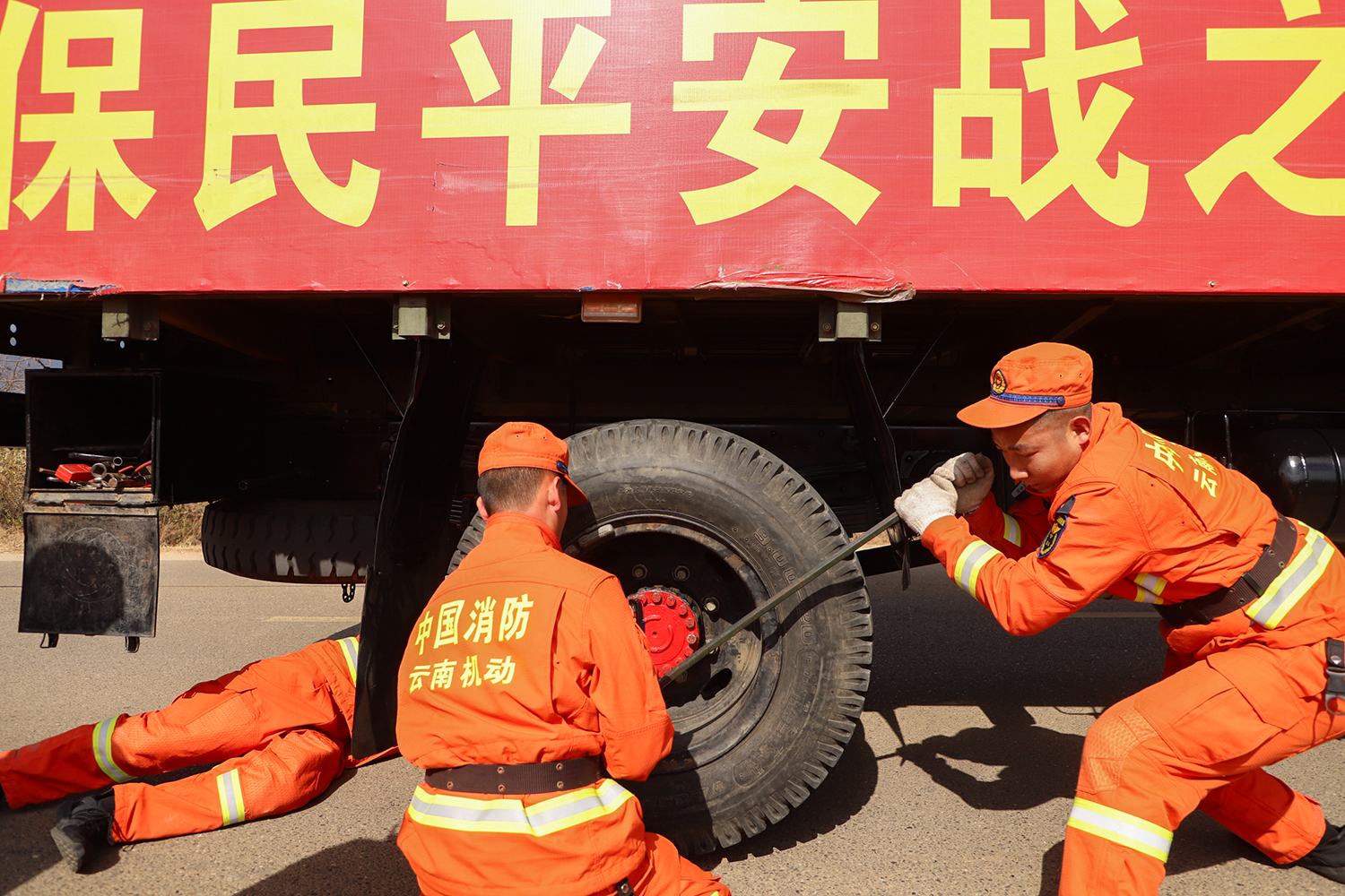 维修小组更换轮胎。 图源:丽江森林消防支队