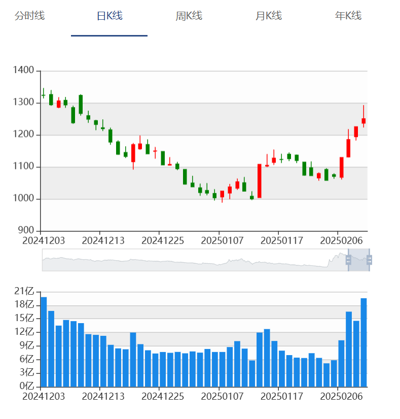 截至2025年2月11日收盘,北交所官网显示(下同),北证50指数收于1250.43点,上涨2.04%,盘中最高接近1300点,单日成交额约为422.80亿元;北交所264家上市公司当日总市值约为6556.42亿元。