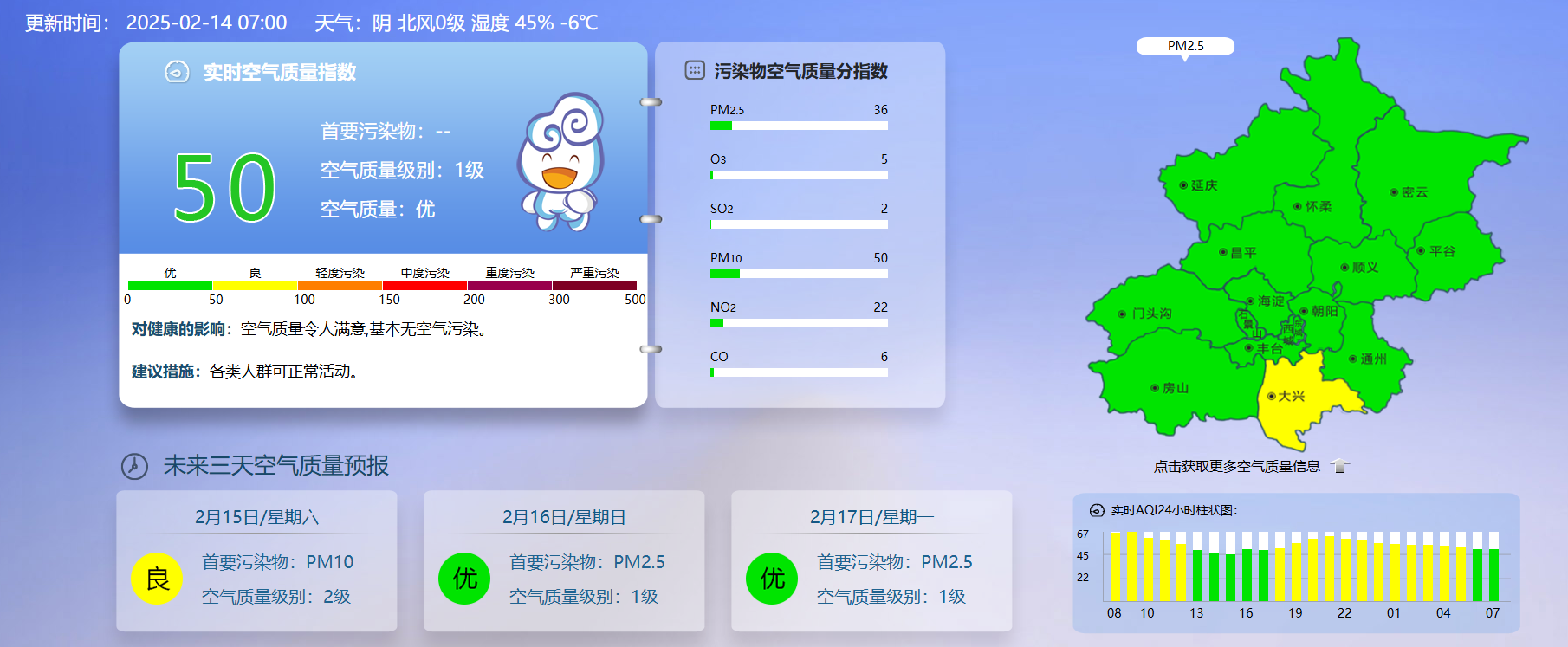 据北京市生态环境监测中心今早7时数据,目前实时空气质量指数50,空气质量优。