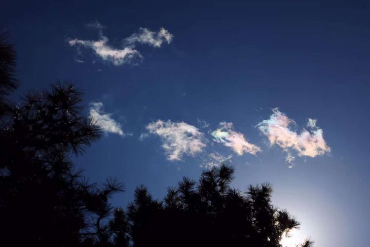 2月16日,北京大风蓝色预警中。紫竹院路,湛蓝的天空出现“七彩祥云”。