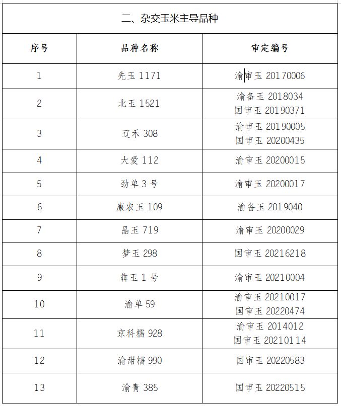 新京报讯 近日,据重庆市种子站官网消息,为引导购种者选用杂交水稻和杂交玉米优良品种,向购种者提供优良品种信息,促进农业增效、农民增收,加快重庆市粮油生产发展。经研究决定,推荐重庆市2025年度杂交水稻主导品种19个、杂交玉米主导品种13个。各区县种子管理部门和农技推广部门应结合实际,充分利用电视、广播、报刊等媒体进行广泛宣传,切实加强杂交水稻和杂交玉米主导品种的宣传和推广,促进主要作物大面积单产提升。