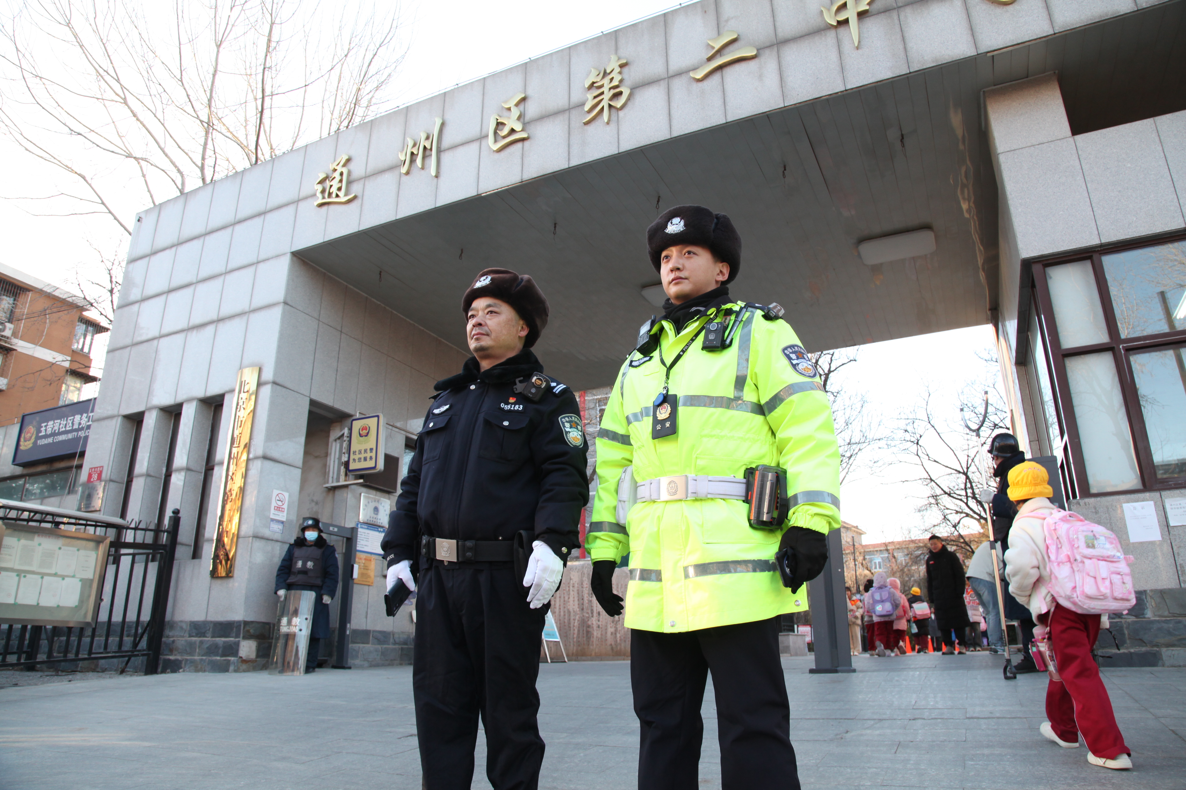 通州公安分局民警开学第一天在学校门口执勤。图源:通州公安