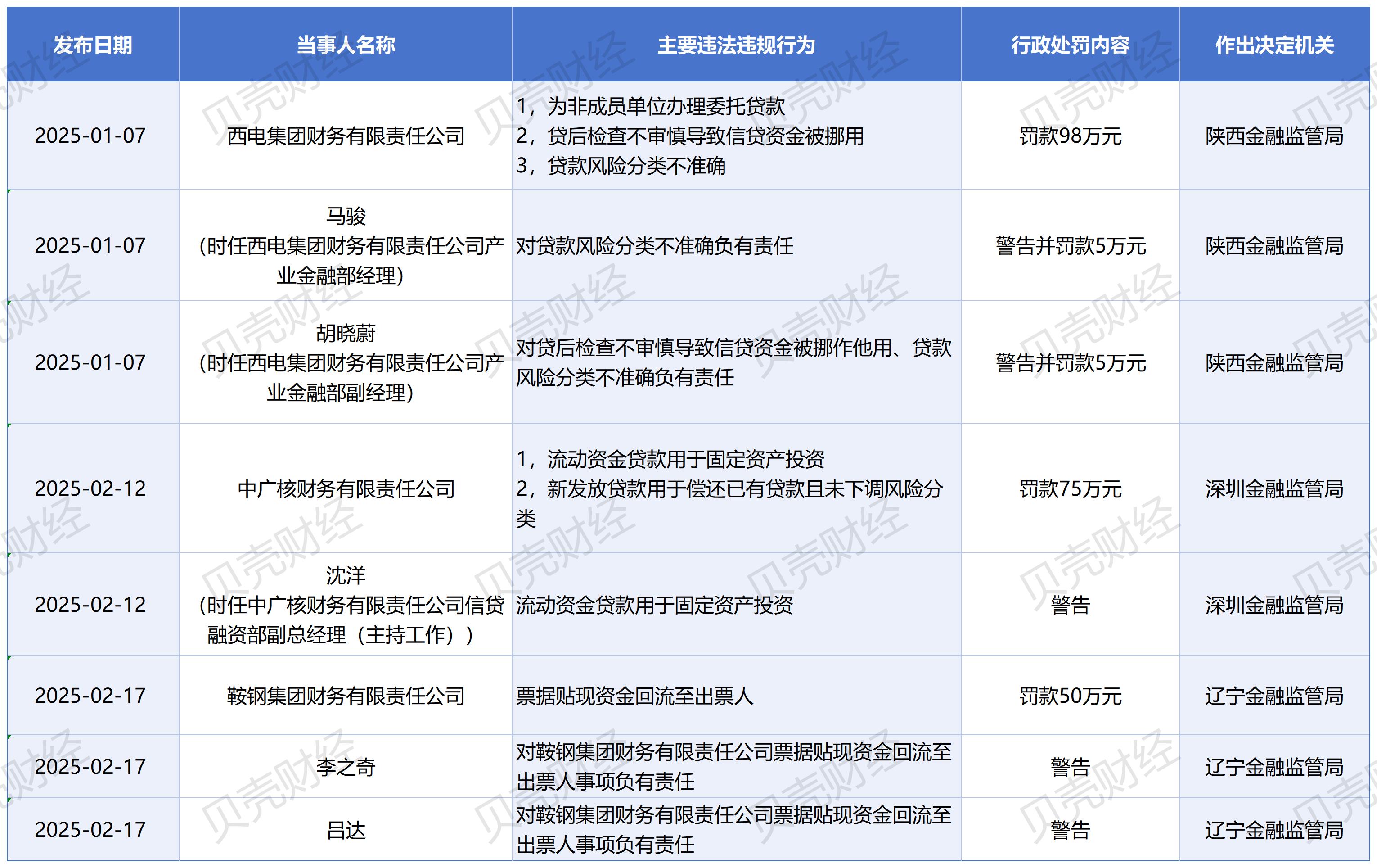 图/进入2025年以来财务公司违规及被处罚情况(截至2025年2月18日,贝壳财经记者根据金融监管总局官网信息制图表)