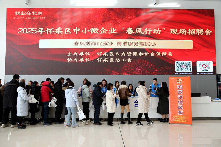2月19日,怀柔区以“春风送岗促就业 精准服务暖民心”为主题的2025年“春风行动”首场招聘会在怀柔区人力资源公共服务中心举办,怀柔区56家单位携952个岗位入场引才,吸引580余名求职者现场应聘,达成初步就业意向384人次。这是春节过后怀柔区举办的首场线下招聘活动,也标志着2025年“春风行动”正式拉开帷幕。