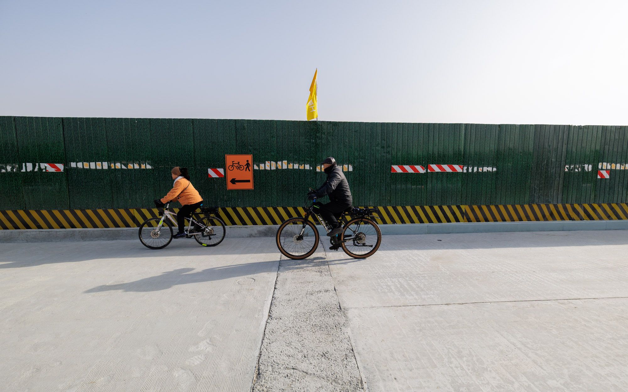 潮白河上,一座新建的大桥雏形初现。运梁车将箱梁运送至桥面上,工人们正忙着进行钢筋绑扎和焊接作业。作为通怀路二期(顺义段)工程的关键控制性节点,潮白河特大桥正在进行路基、路面、桥梁施工。