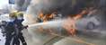消防救援人员对着集装箱房灭火。 图源:朝阳区消防救援支队