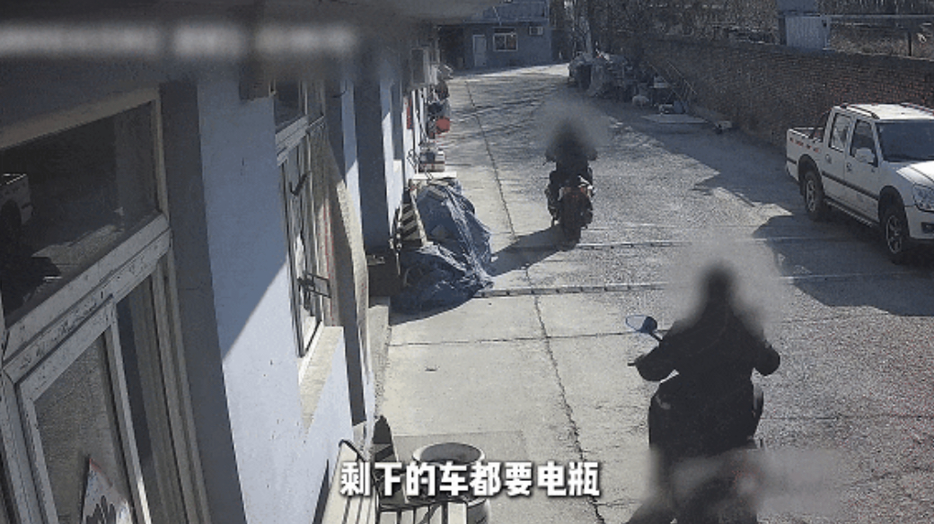 嫌疑人盗走电动自行车电瓶的画面。 图源:朝阳警方