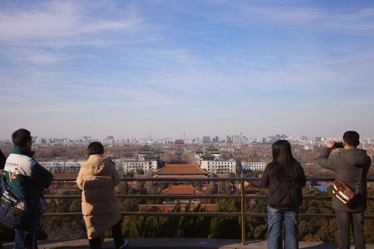2月24日,北京景山,游客极目远眺,北京城市美景尽收眼底。2024年北京市的空气质量整体表现良好。北京市PM2.5浓度为30.5微克/立方米,同比下降6.2%,连续四年稳定达到国家二级标准;优良天数为290天,同比增加19天。
