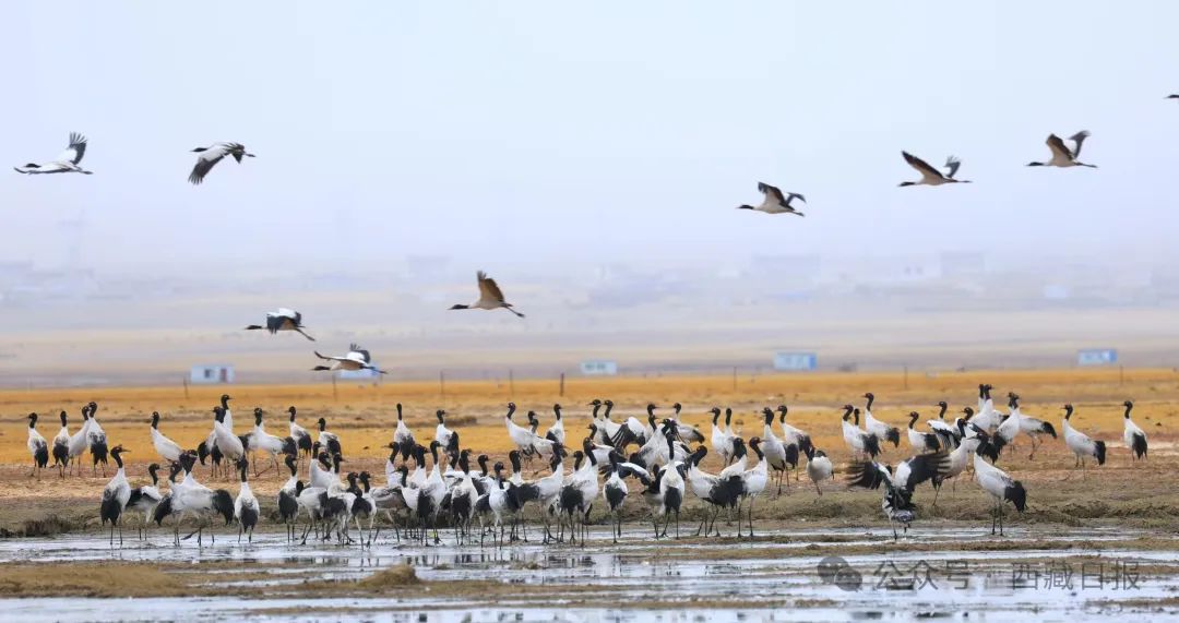黑颈鹤是全球15种鹤类中唯一一种在高原地区繁殖和越冬的鹤类,也是分布在我国的9种鹤类中唯一的中国特有鹤类,属国家一级保护野生动物。每年冬季,大批黑颈鹤从繁殖地迁徙到雅鲁藏布江中游河谷地带越冬,这些可爱的“高原精灵”成为冬日里一道生动美丽的风景线。