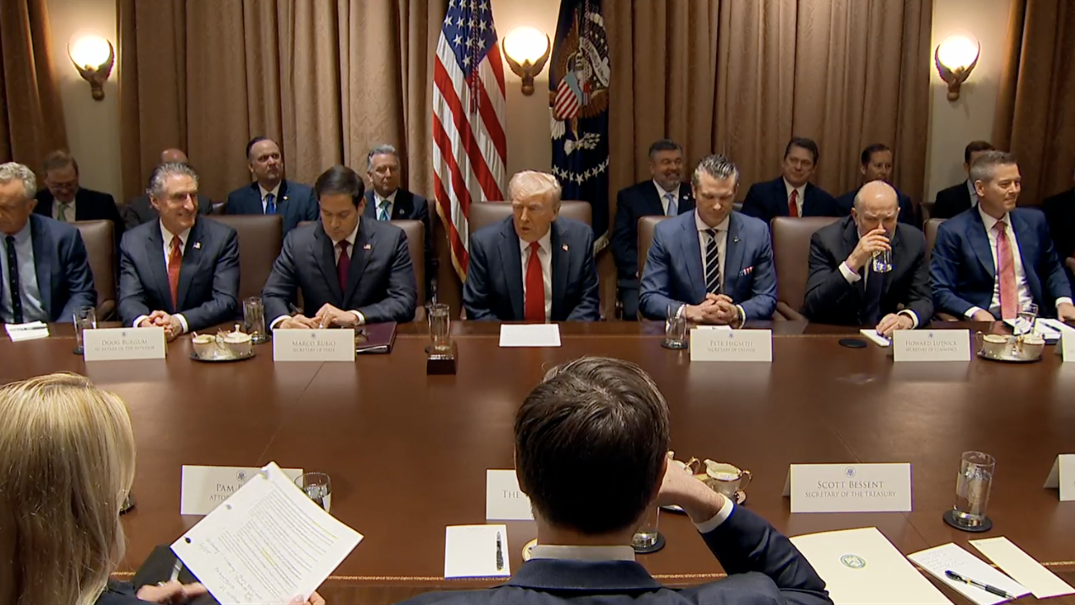 据央视新闻消息,当地时间2月26日,美国总统特朗普召开其第二任期的首次内阁会议。政府效率部负责人埃隆·马斯克,虽然并非内阁成员,也参加了会议。