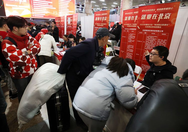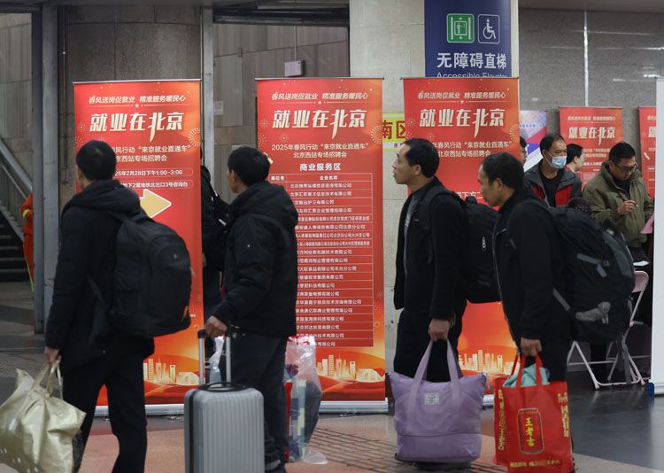 2月28日,北京市人社局联合北京市重点站区管委会在北京西站举办2025年春风行动“来京就业直通车” 专场招聘会,近百家企业提供市场策划、景区运营管理师、家政、安保等3000余个岗位。