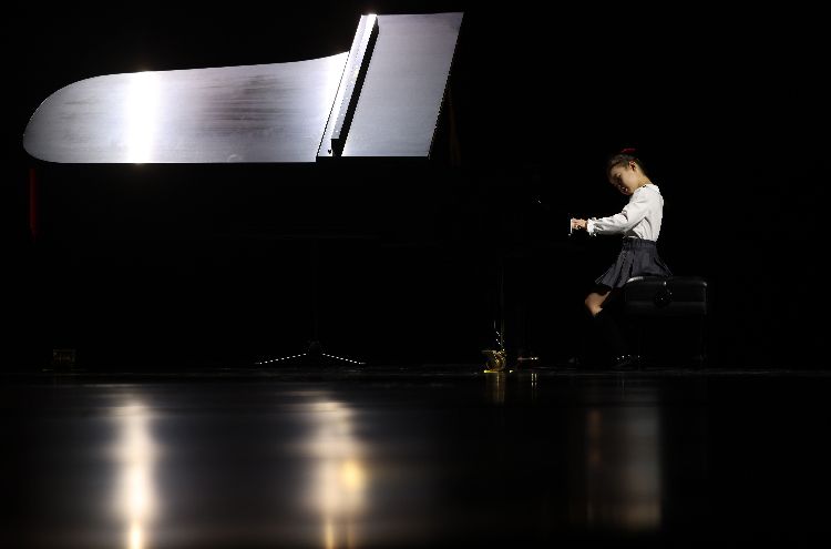 小朋友表演钢琴曲《学习雷锋好榜样》。