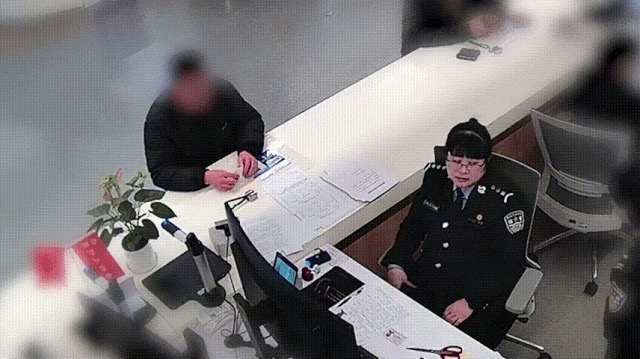窗口辅警发现异样后喊来值班民警核查信息。图源:杭州公安