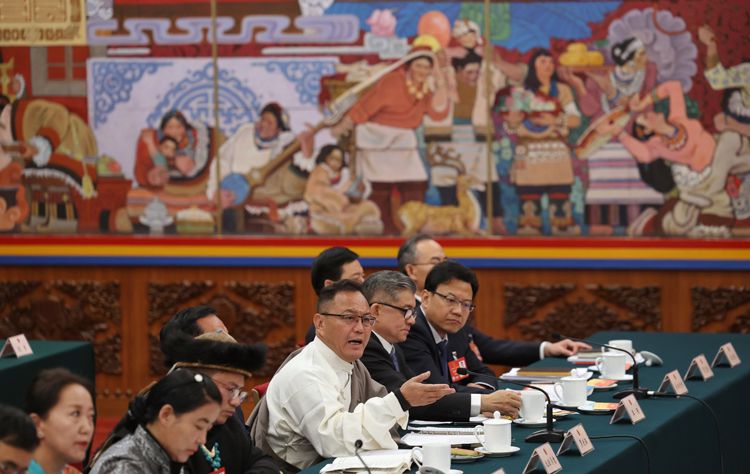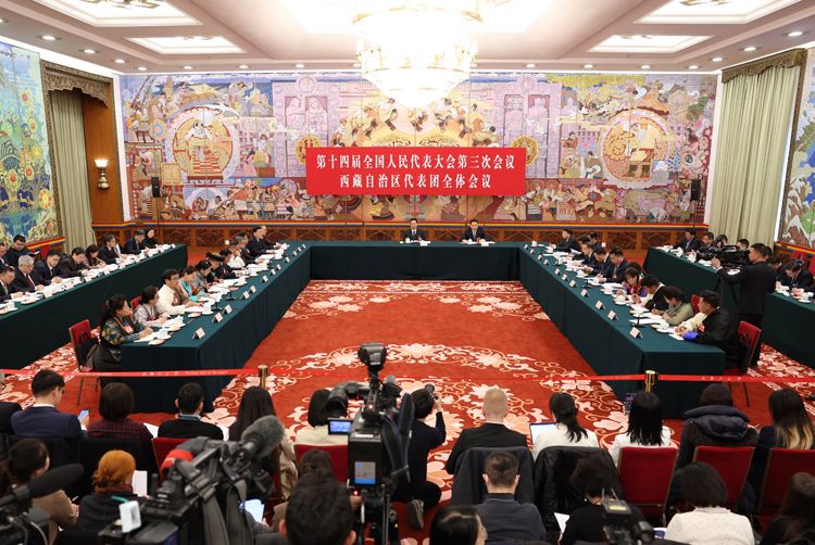 3月6日,人民大会堂,出席十四届全国人大三次会议的西藏代表团举行开放团组会议,审议政府工作报告并回答记者提问。