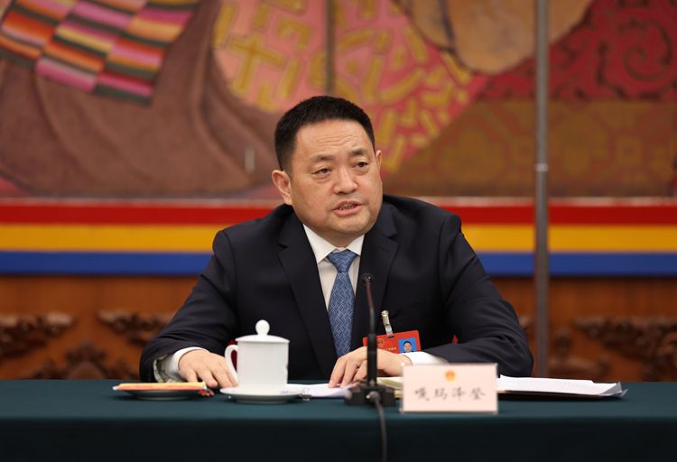 全国人大代表、西藏自治区党委副书记、自治区主席嘎玛泽登发言。