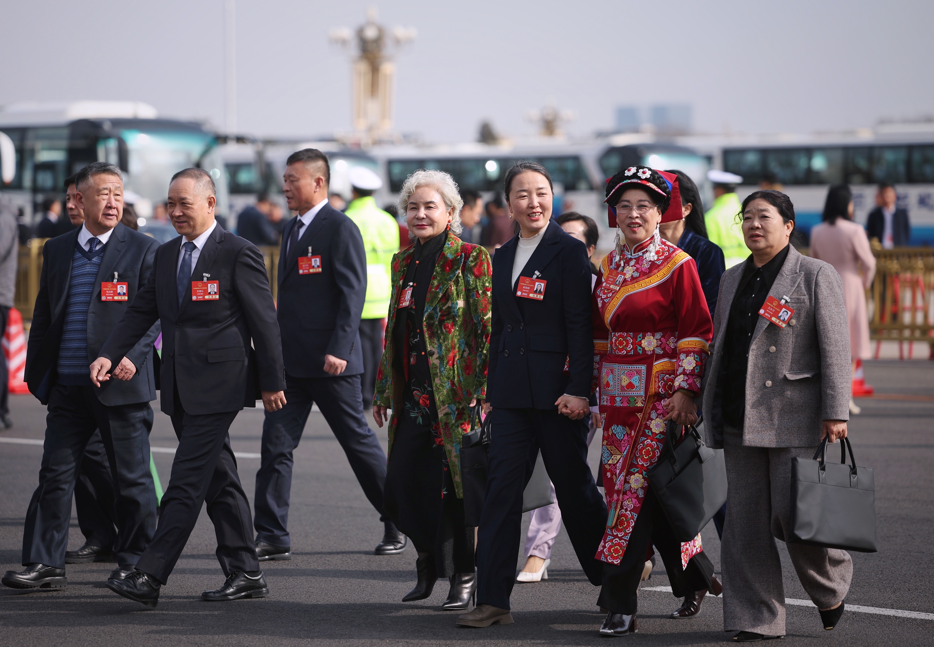 ▲2025年3月4日,几位全国人大代表走向人民大会堂。新京报记者 薛珺 摄