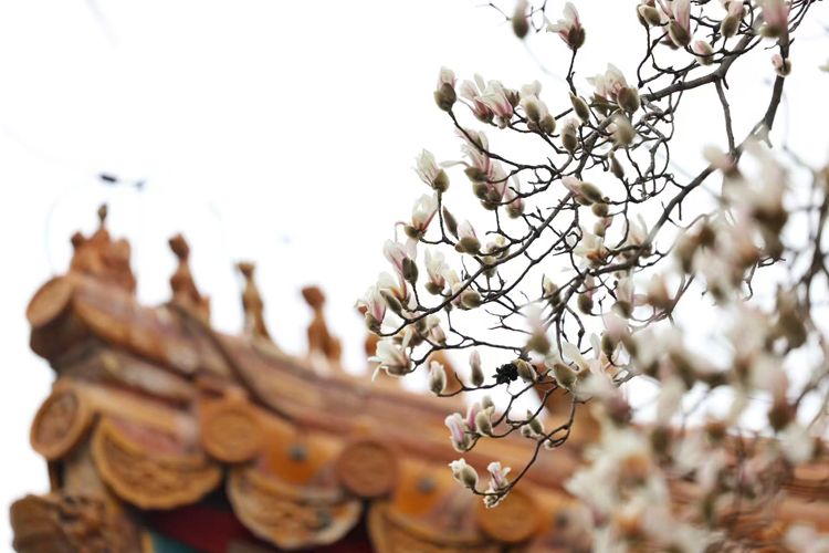 3月11日,景山公园东门,望春玉兰优雅地绽放在枝头。