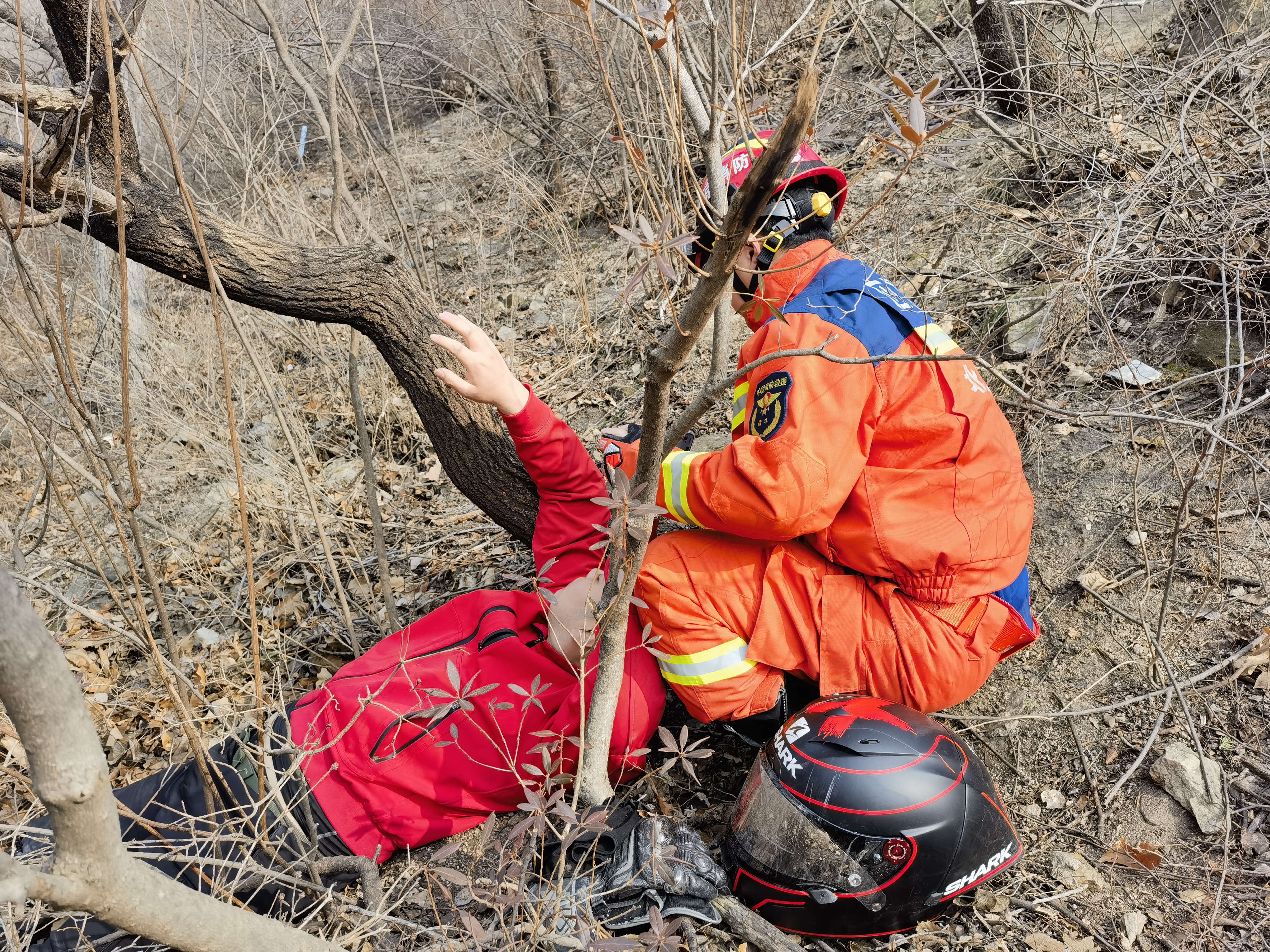 摩托车失控致骑手被甩下山坡,北京怀柔消防紧急救援