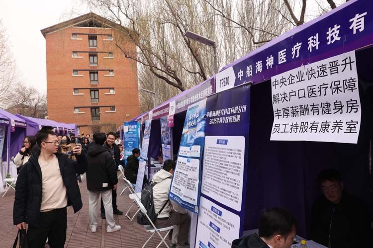 “大国重器”专场校园招聘会上人头攒动。据悉,2024届清华毕业生国内重要领域重点单位就业率超过85%;京外就业率连续10年超过50%。其中,制造业、能源业就业人数连续5年增长。截至目前,2025届9000名毕业生中近八成已落实去向。