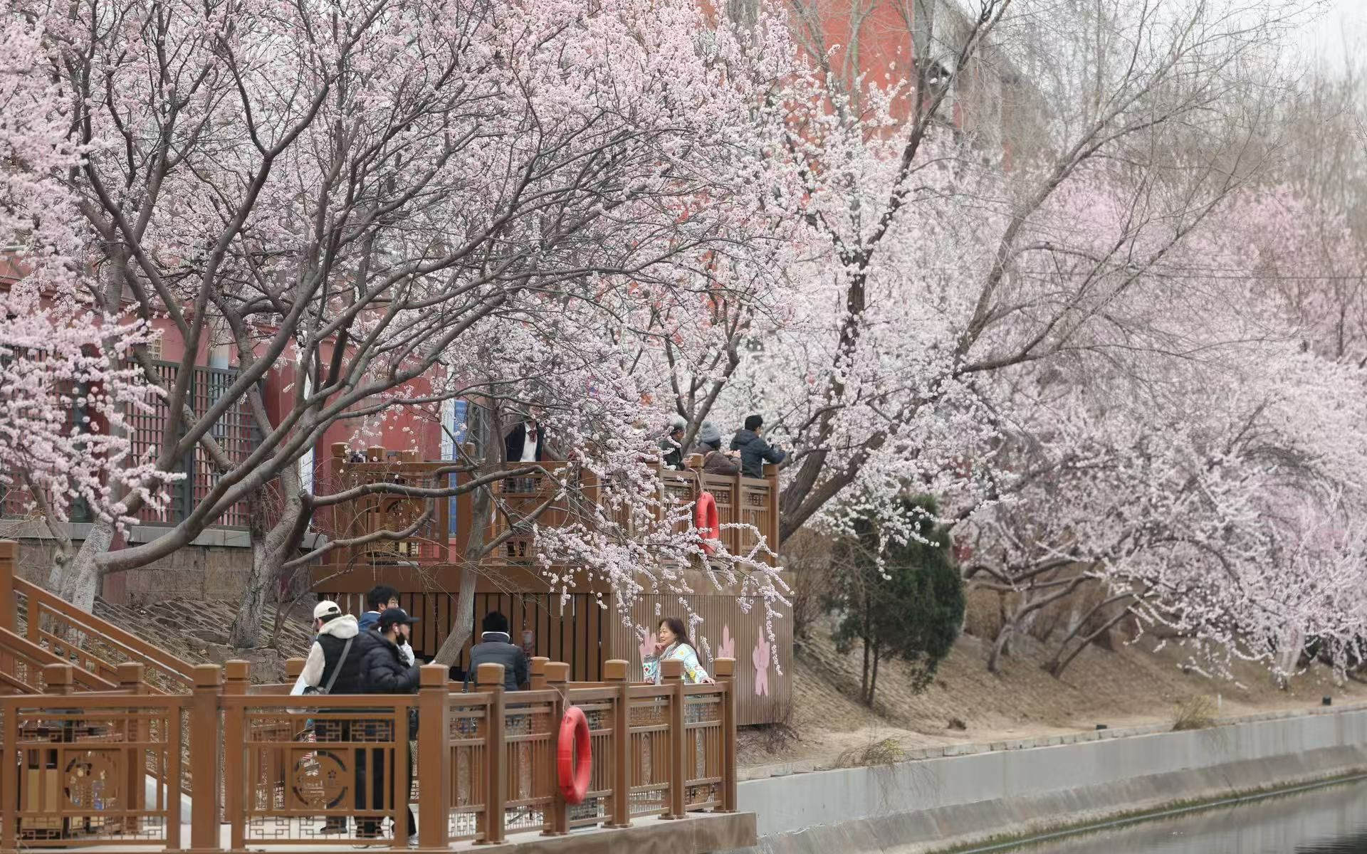 新京报讯(记者吴婷婷)春暖花开,朝阳区二道沟河六里屯段的“山桃花溪”迎来了最佳观赏期。目前,二道沟已完成滨水空间提升工程,通过“河长制”加强对河流的日常监管与治理,改善河道生态环境。
