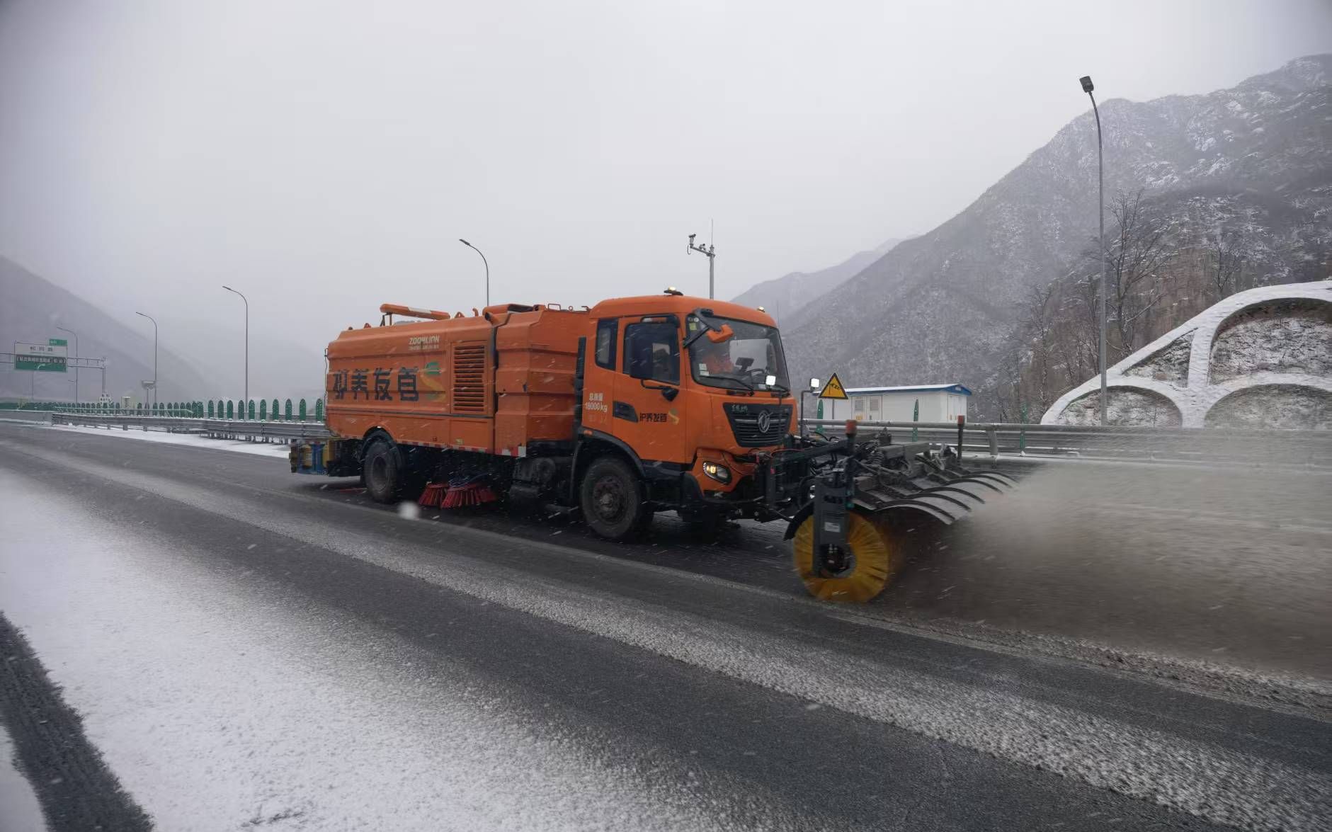京承三期持续中到大雪,首发养护正开展机械除雪作业。首发养护公司供图