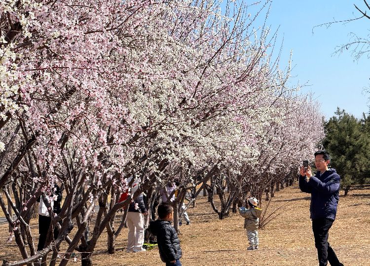 3月16日,北京官庄公园,桃花林如梦似幻,仿佛一片粉色的海洋。