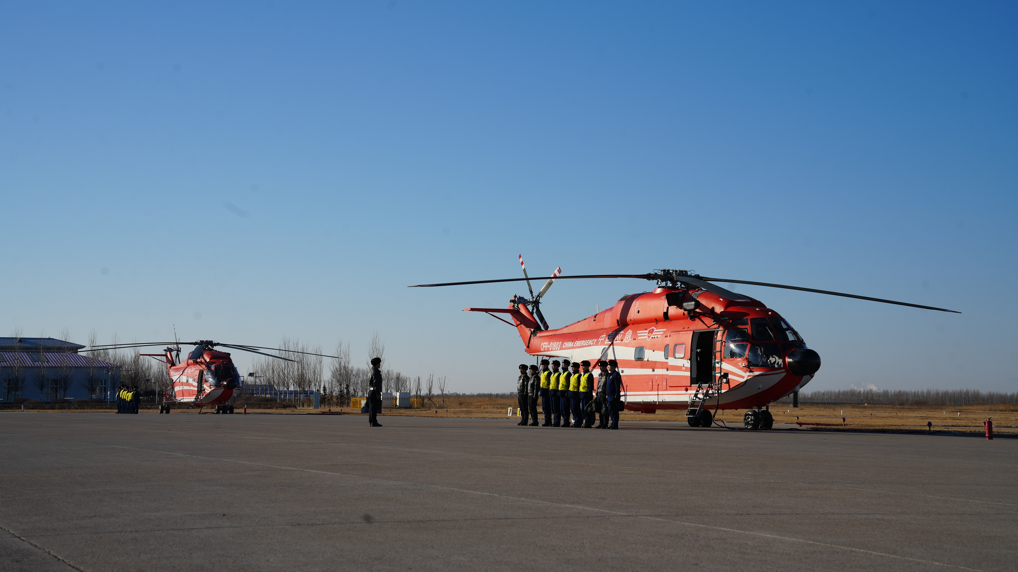 省外驻防分队准备登机。 图源:大庆航空救援支队