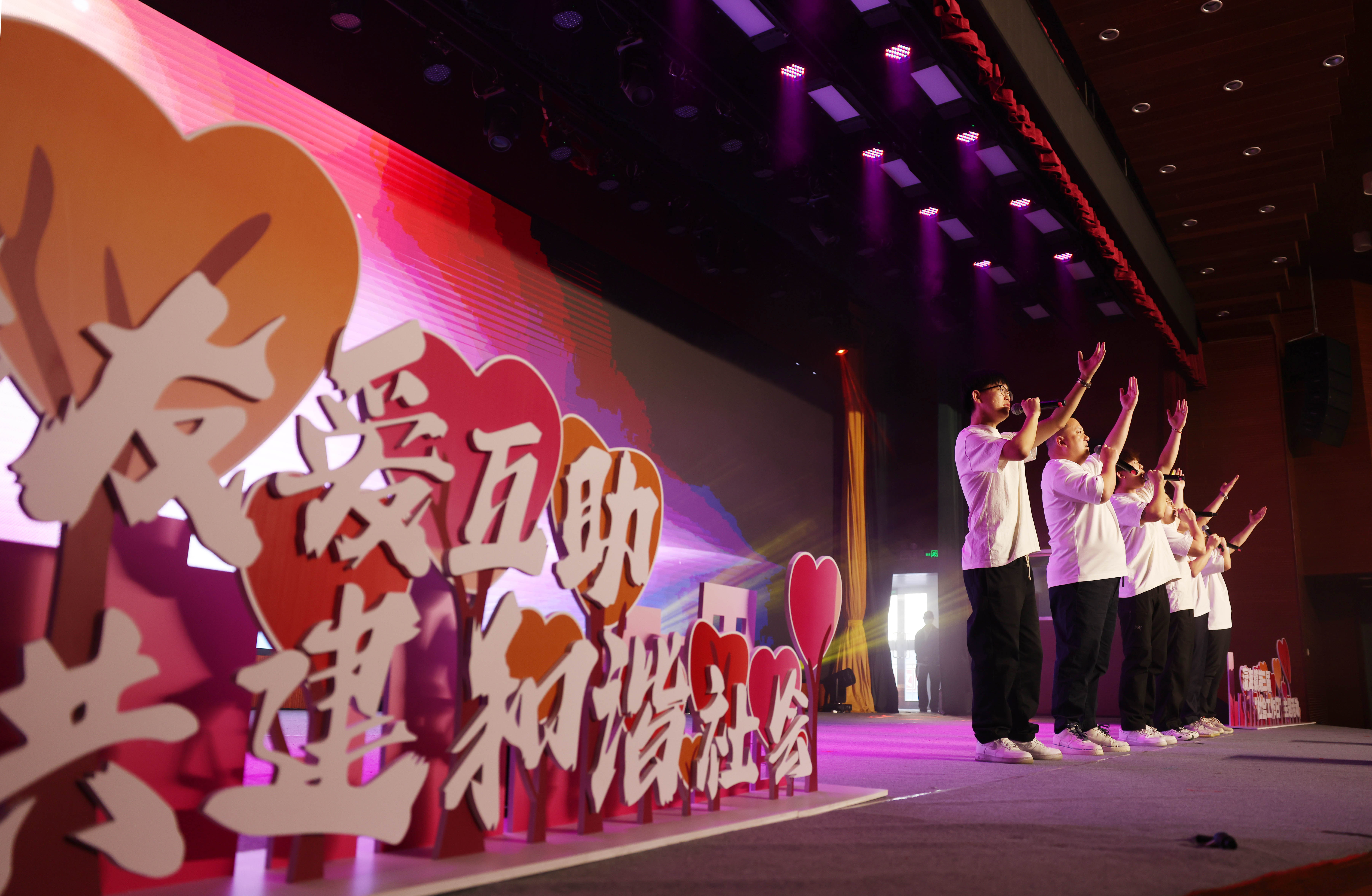优秀社工代表带来歌曲串烧《奋斗者•正青春》,展现社工青春向上的精神面貌。新京报记者 李木易 摄