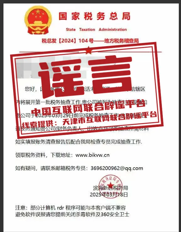 谣 言 天津滨海新区税务局将开展税务抽查?