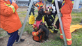 消防救援人员利用绳索将被困男子拖出淤泥。 受访者供图
