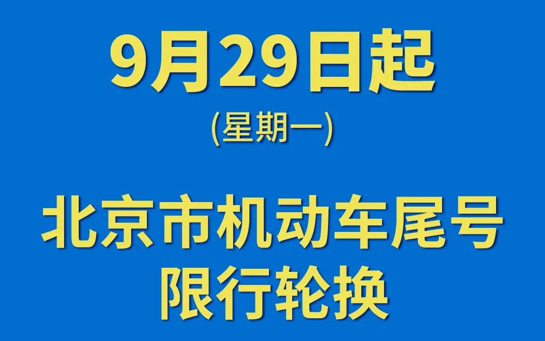 (三)自2025年9月29日至2025年12月28日,星期一至星期五限行机动车车牌尾号分别为:4和9、5和0、1和6、2和7、3和8;