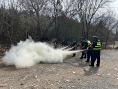 演练模拟石景山区石景山路9号院(八宝山革命公墓)办公楼一层东侧某宿舍因线路短路起火,火势蔓延,猛烈燃烧,高温浓烟导致一楼西侧办公室工作人员受困。单位微型消防站接警后立即启动应急处置预案,6名微型消防站人员迅速到场展开初期控火与人员疏散。根据石景山消防支队前期“一警六员”实操培训,微型消防站人员正在利用灭火器对起火点实施火势压制,同时,微型消防站人员到未着火房间进行人员疏散,成功疏散一层被困人员10名。