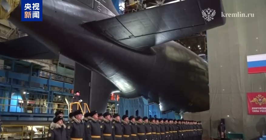 克里姆林宫当晚还发布了普京登上“阿尔汉格尔斯克”号核动力潜艇参观的画面。“阿尔汉格尔斯克”号核动力潜艇与当天下水的“彼尔姆”号同属于亚森-M级(也称“白蜡树-M”),于2024年12月27日正式入列俄罗斯海军。