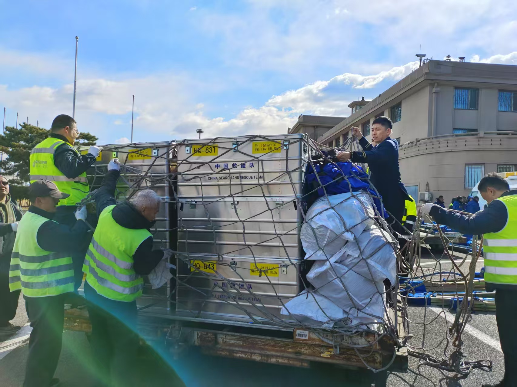 救援物资装机。国航供图