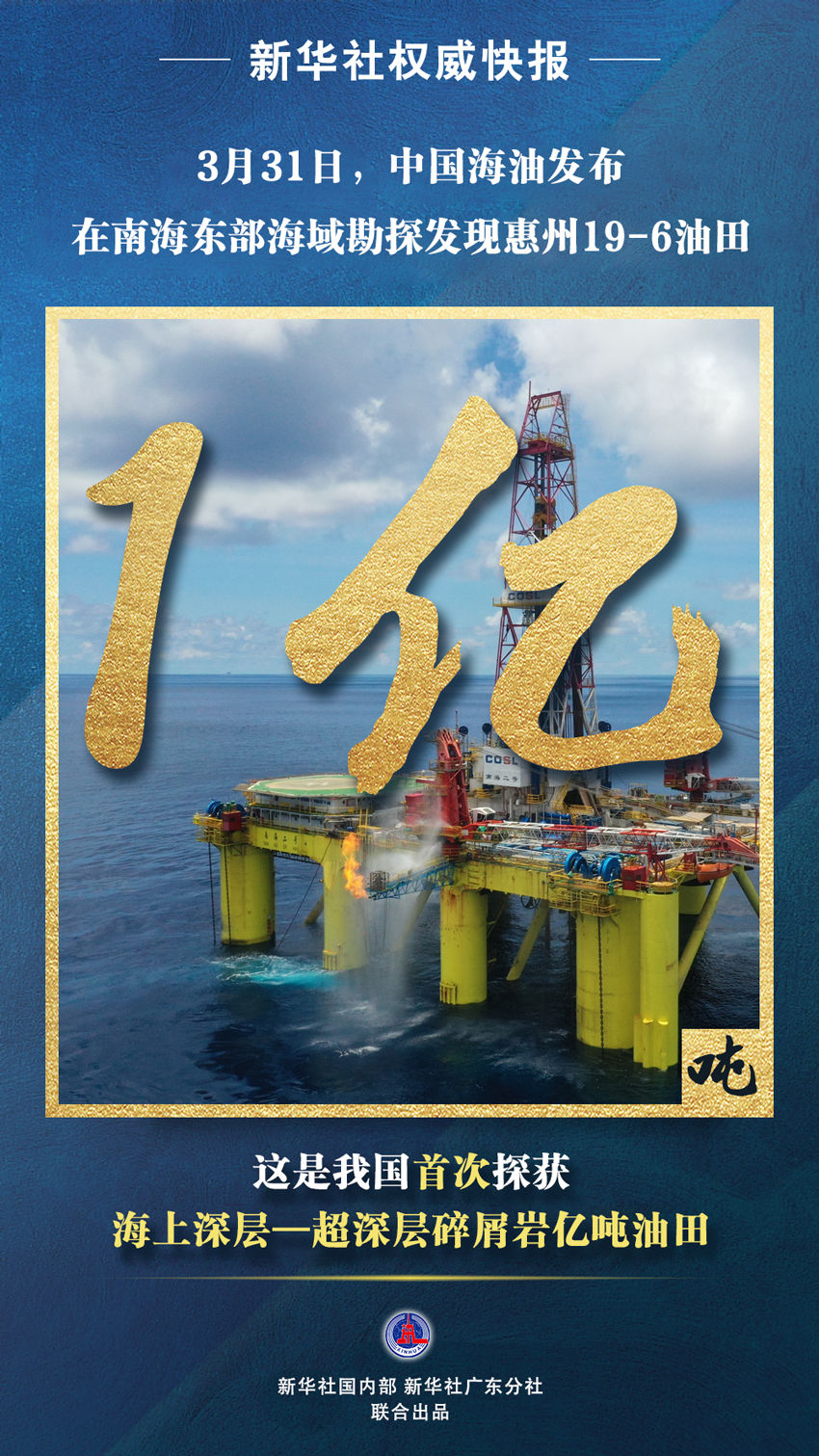 据新华社深圳3月31日电 3月31日,中国海油发布消息,我国在南海东部海域勘探发现惠州19-6亿吨级油田。这是我国首次探获海上深层—超深层碎屑岩大型整装油田,展示出我国近海深层—超深层领域油气勘探潜力。
