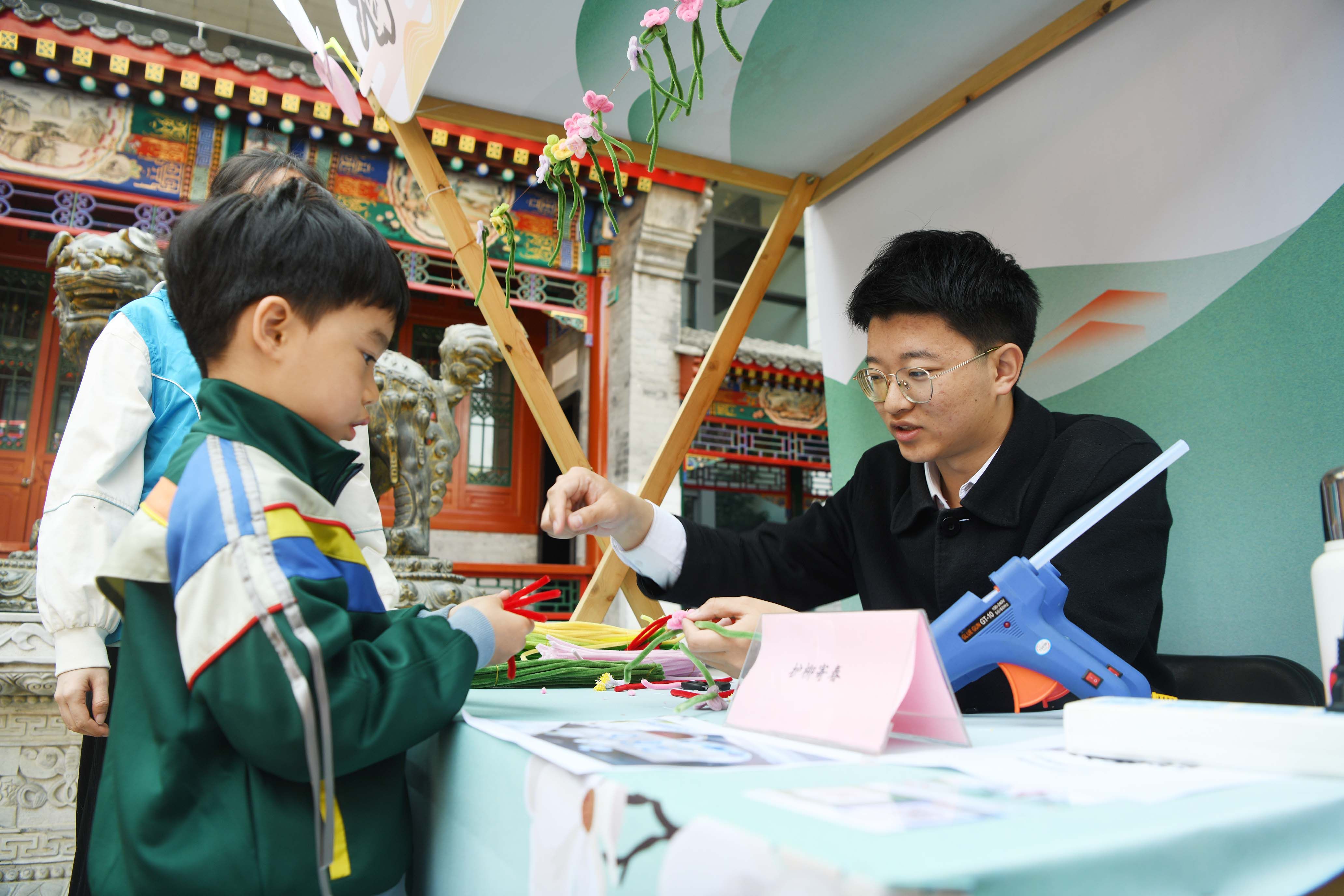 小朋友在中国园林博物馆参加“园居春信”清明节文化活动。新京报记者 薛珺 摄
