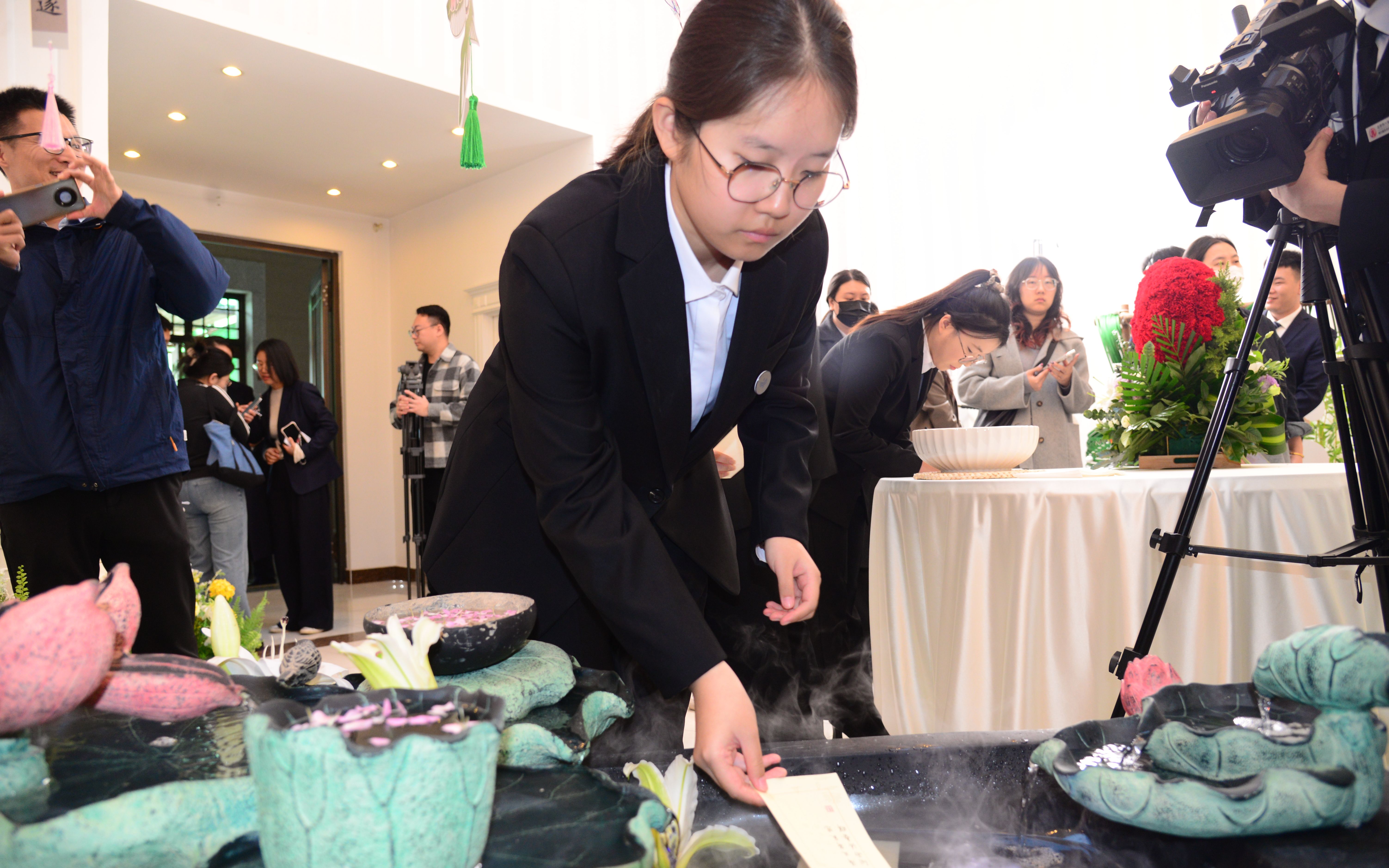 市民张文萍一家带着纸钱前来,在工作人员引导下,将纸钱换成了鲜花。“这种方式既环保又不失仪式感,也能表达对亲人的思念。”张文萍说。