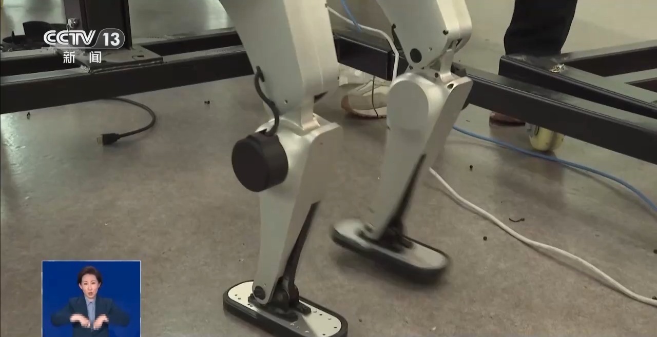 松延动力(北京)科技有限公司机器人运动算法工程师 黄兴华:目前我们采用的是粘胶的方式,可能跑到一定的时间,就会磨损掉。现在正在设计不同的鞋垫,给这个机器人套上,增加它的摩擦力。