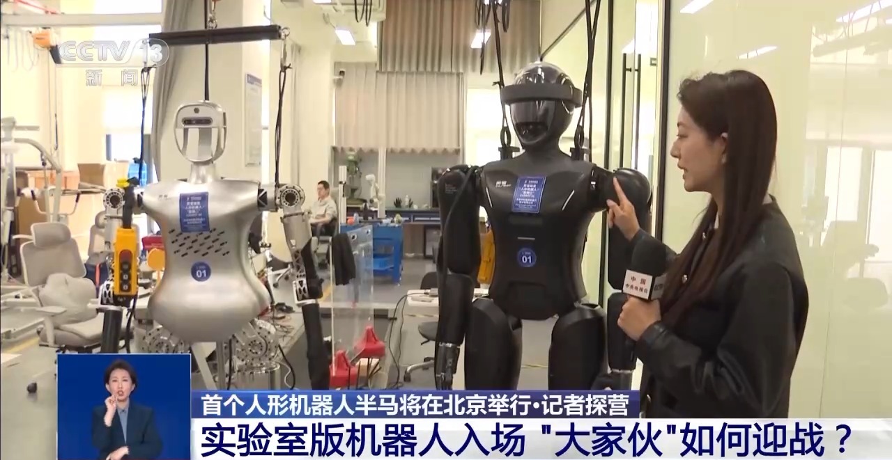 总台记者 邵薇:在“灵宝”的工作调试间可以看到,黑色的机器人是已经成熟投产使用的“CASBOT 01”机器人,而银色的是它的实验室版本SE,也是这一次半马比赛的参赛选手。