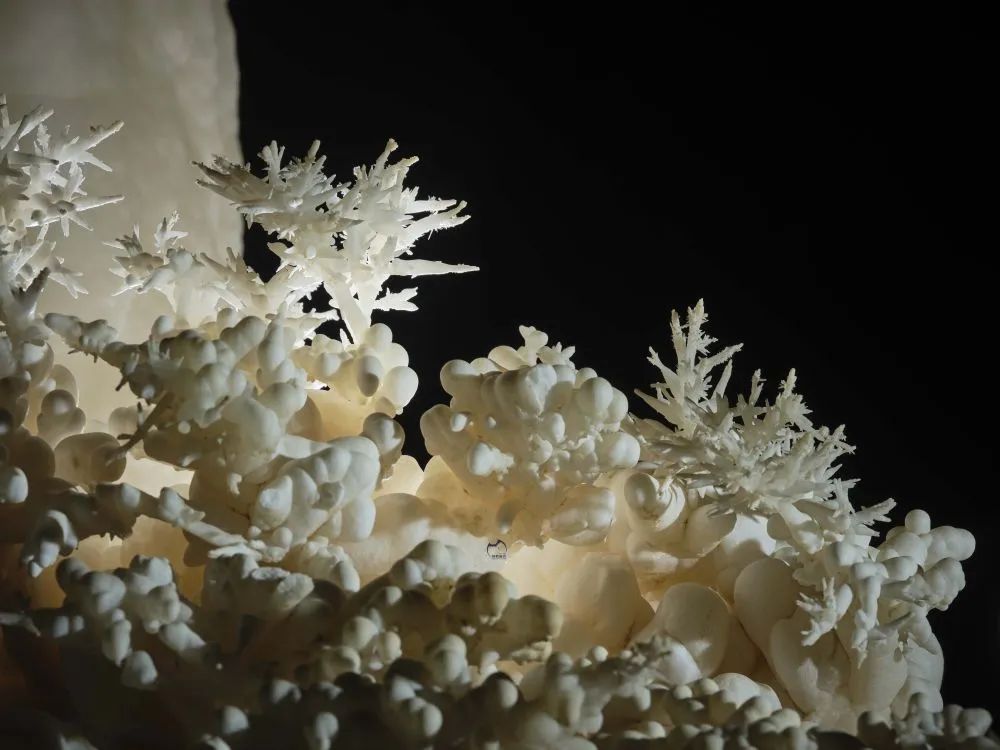 在石笋、洞底凝结出千奇百态的石花、石枝、石葡萄、石珊瑚等