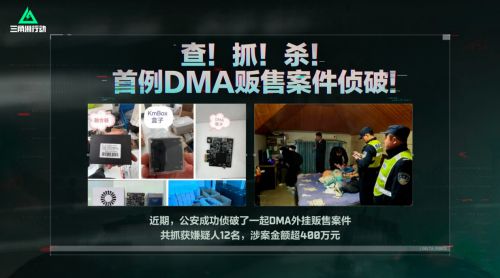 4月12日,《三角洲行动》在S4前瞻直播中公布了首例DMA游戏外挂案件已成功告破。同时根据平安开封消息显示,这次外挂案件是由河南开封市杞县公安局联合《三角洲行动》共同侦破,抓捕了一DMA游戏外挂销售团伙,严厉打击了游戏灰黑色产业,维护清朗网络环境。