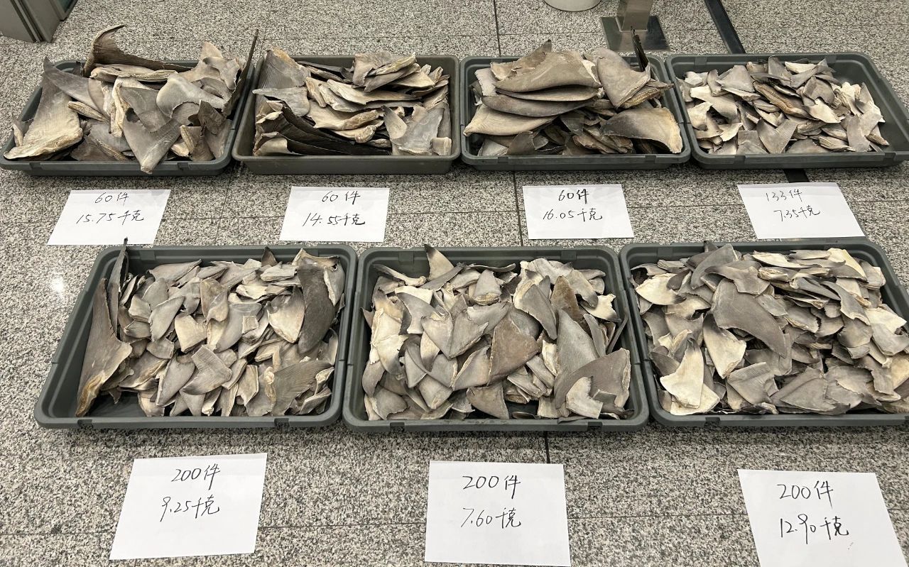 经鉴定,相关物种分别为公牛真鲨、沙拉真鲨、鼬鲨、侧条真鲨、无沟双髻鲨、高鳍真鲨、路氏双髻鲨、恒河鲨,均被列入《濒危野生动植物种国际贸易公约》(CITES)附录Ⅱ受保护。