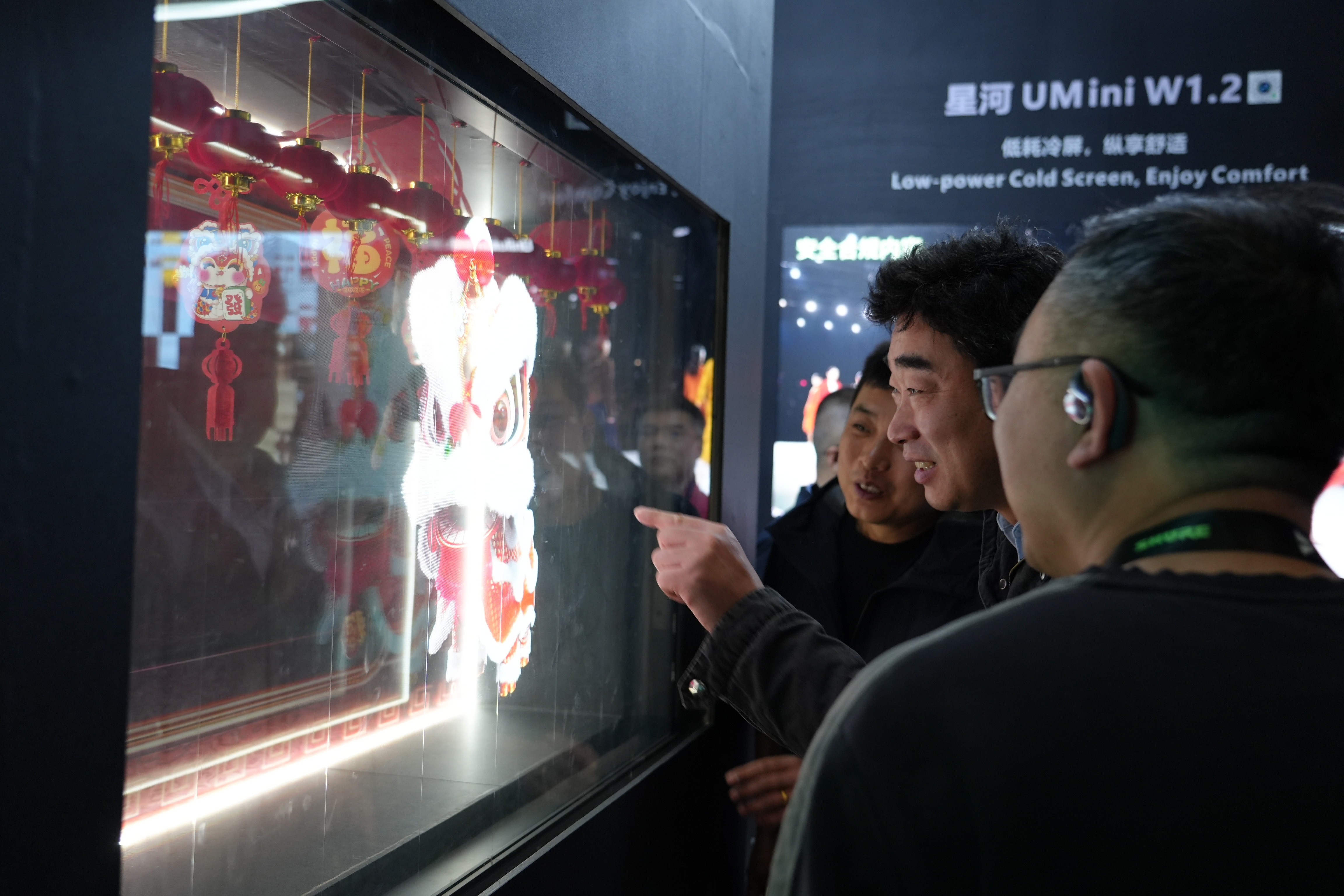● Upanel AM0.6-T透明屏:AM COG(玻璃基)工艺技术,画面通透平整,搭配低蓝光护眼方案,完美兼顾拍摄友好与长时间观看舒适性。画面所呈现的AI虚拟形象“醒狮”,由洲明团队自主设计并登上2025央视春晚,以数字形象向全球华人拜年。