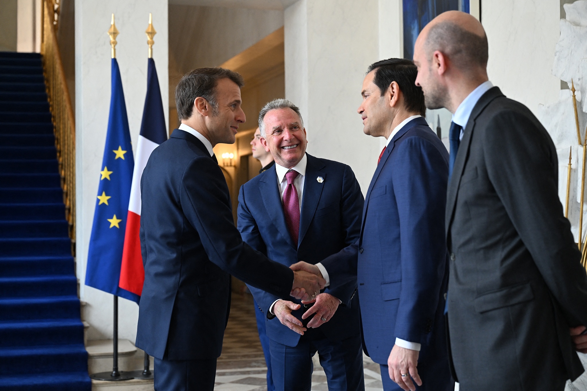 马克龙当天会见了到访的美国国务卿鲁比奥。鲁比奥当天同乌克兰、法国、英国三国外长,以及德国外交部官员举行了会议,磋商乌克兰问题。