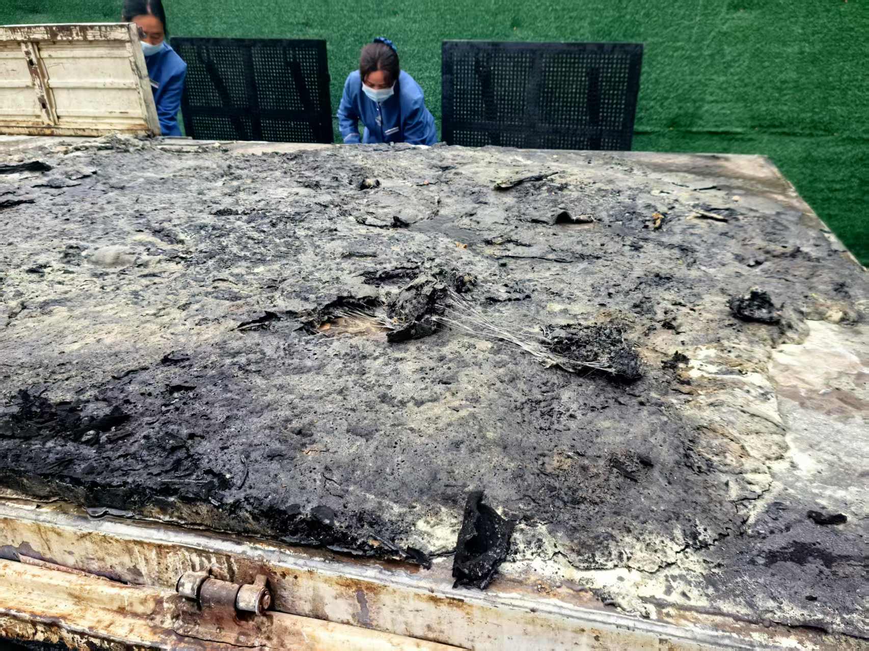被点燃的塑料泡沫。图源;石景山区消防救援支队